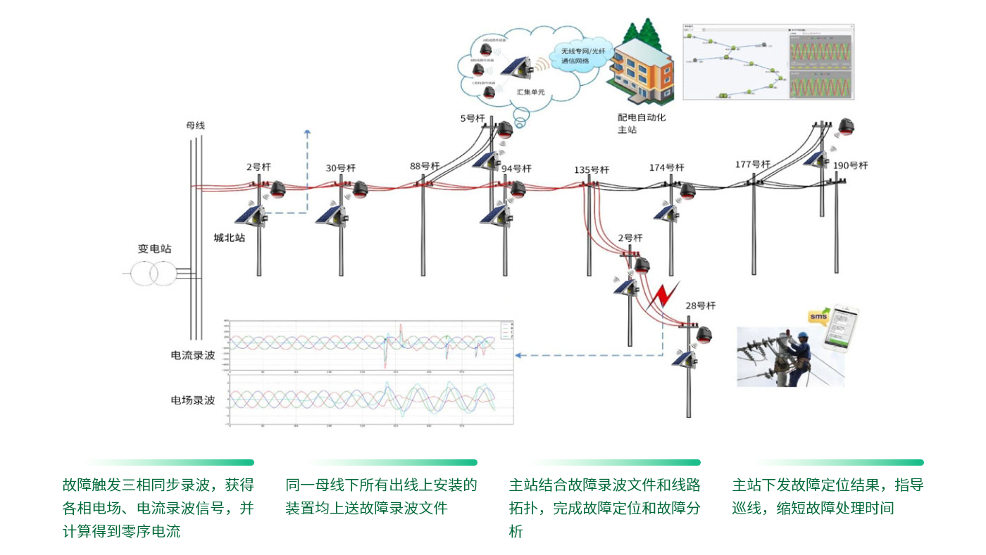 作為智能電網(wǎng)建設(shè)的重要環(huán)節(jié),配電網(wǎng)在電力系統(tǒng)中起著至關(guān)重要的作用。在我國,配電網(wǎng)在整個(gè)電力系統(tǒng)中尚處于非常薄弱的環(huán)節(jié),配電網(wǎng)絡(luò)結(jié)構(gòu)復(fù)雜、線路長、分支多,用戶遭遇的停電,90%以上由配電系統(tǒng)故障引起,其中瞬時(shí)性故障、弧光故障、高阻故障占比超過50%,且故障查找、分析和運(yùn)行數(shù)據(jù)的獲取非常困難。